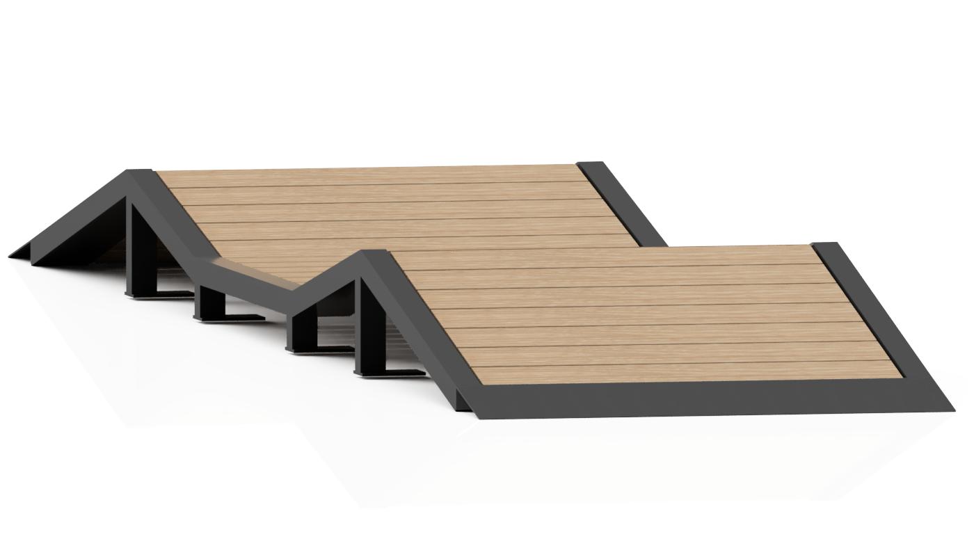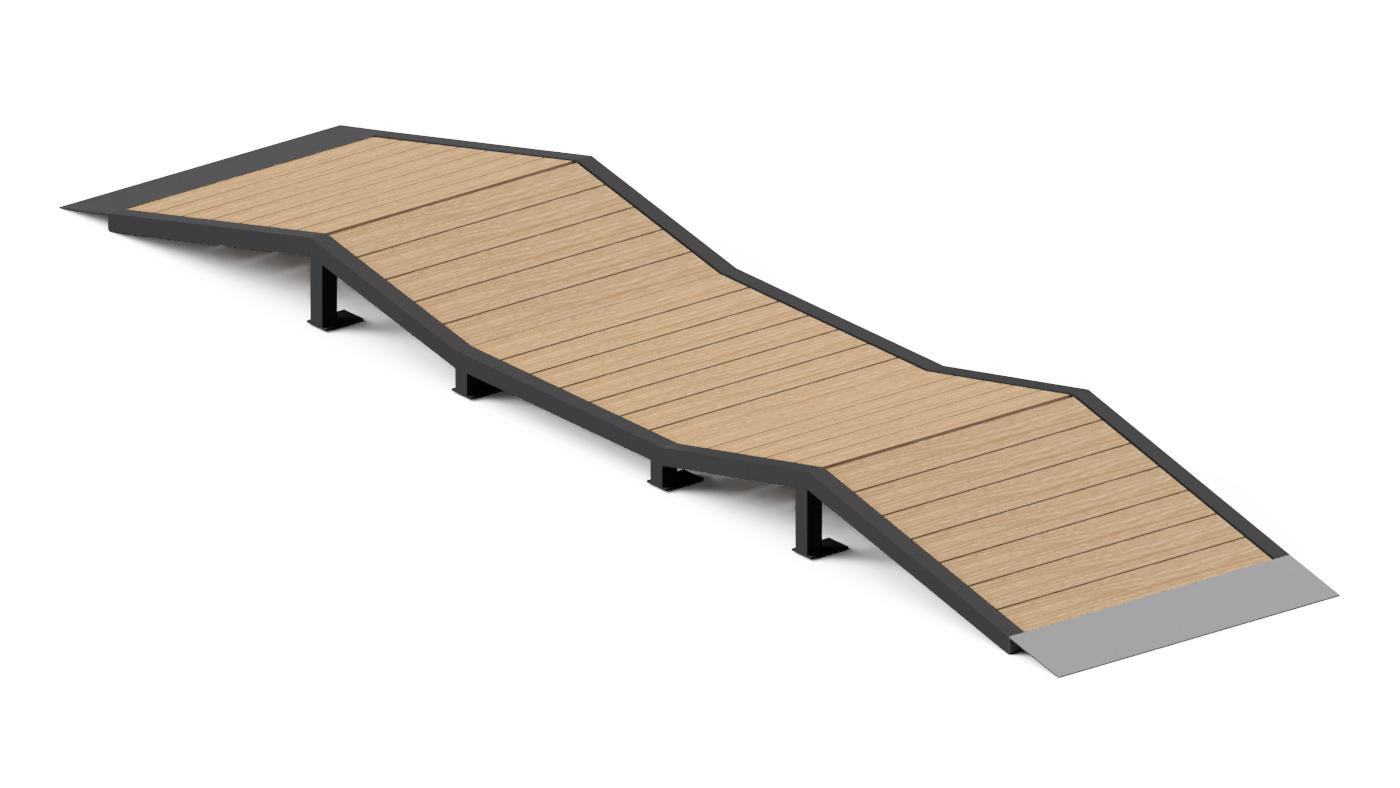 Double mountain is 20cm high an 75cm wide obstacle that mimics ramps. It is fun element that also develops user skills.