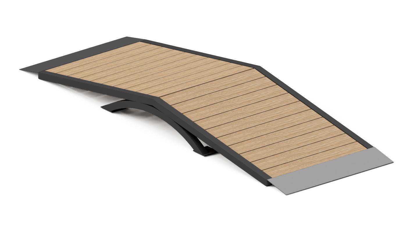 Mini A is 20cm high an 75cm wide obstacle that mimics ramps. It is fun element that also develops user skills.